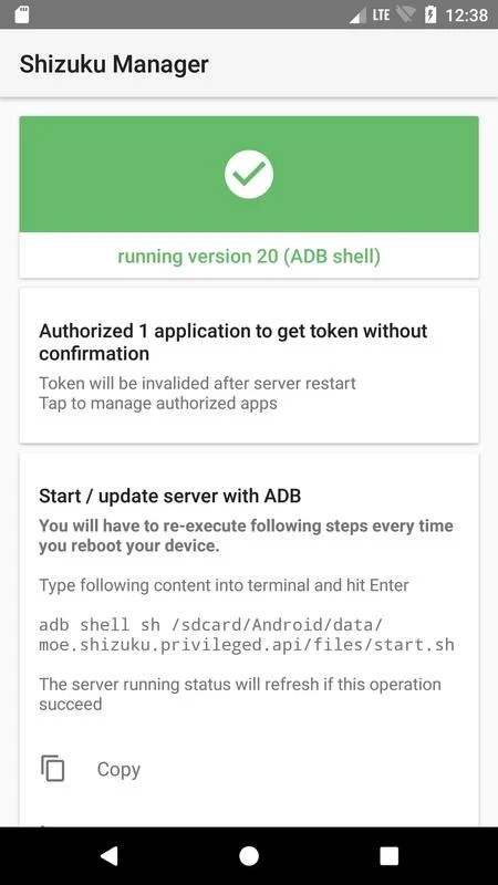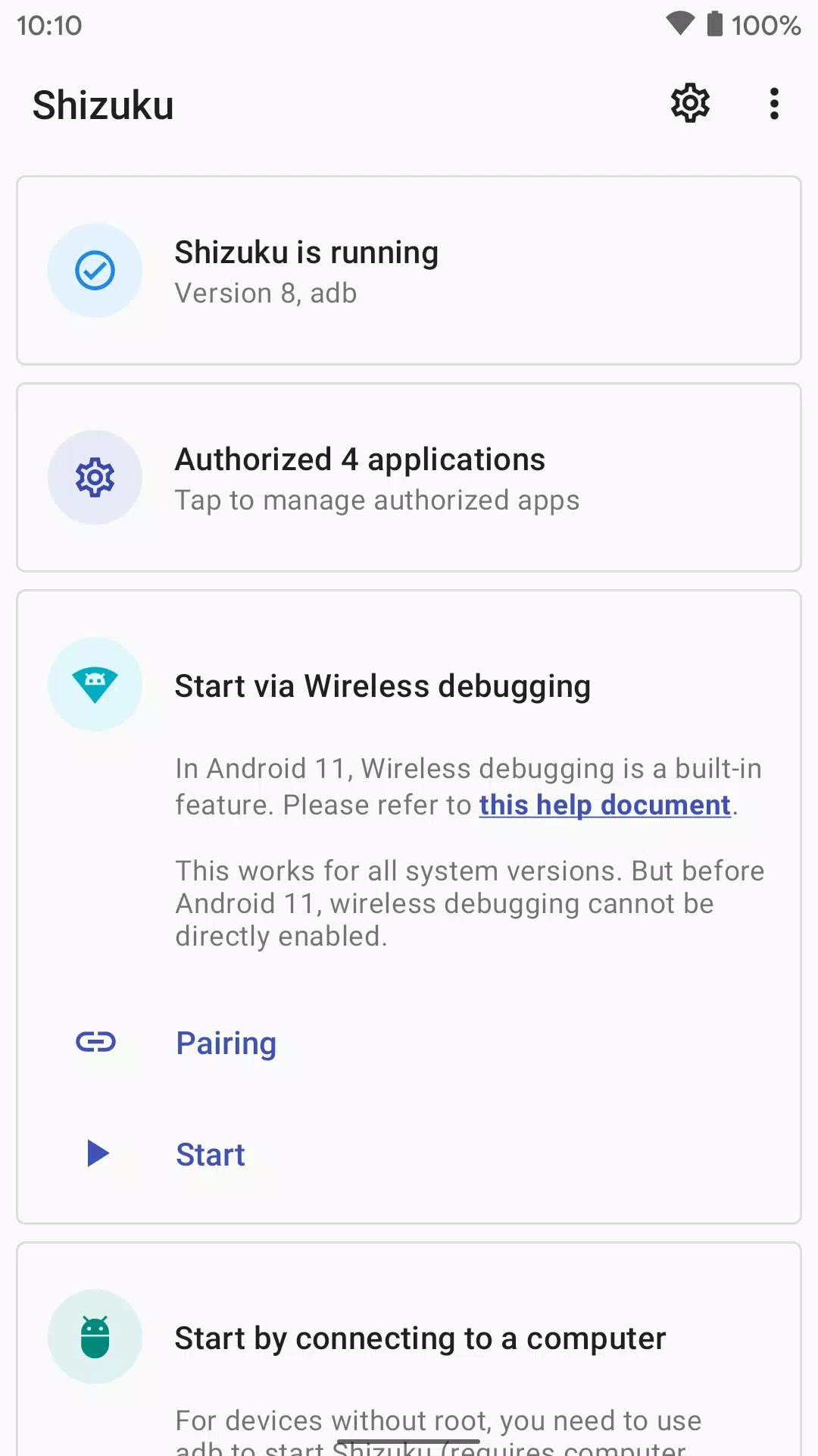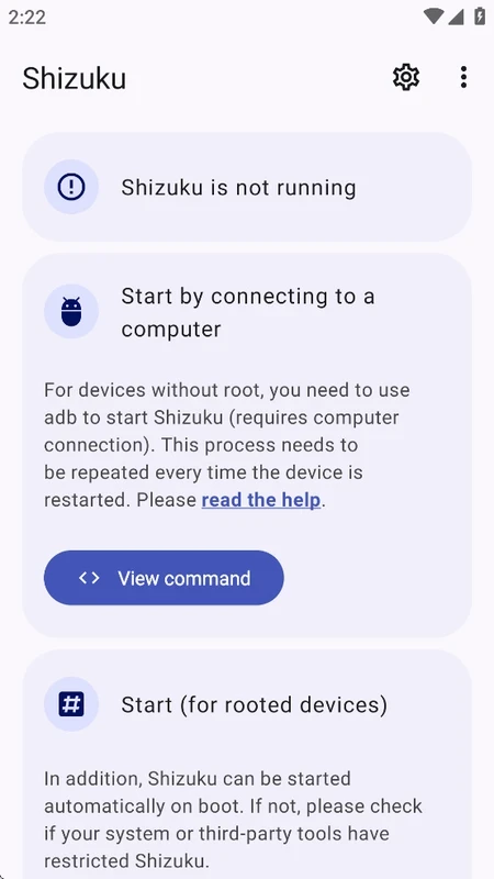 Uygulama, Shizuku sunucusunu başlatmak için iki yöntem destekler: Kök erişimi gerektirmeyen kurulum için ADB veya kök erişimi varsa kök erişimi ile. Cihazınızı yeniden başlatmak, ADB moduna hızlı bir başlangıç sağlar. Kök erişimli modda ise kolay yeniden başlatmalar mümkündür ve yöntemi gereksinimlerinize göre seçebilirsiniz.